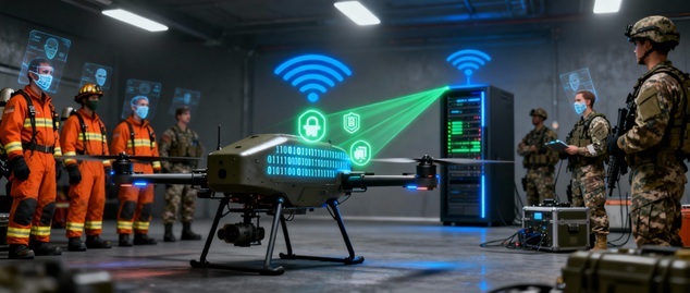 Służby wojskowe i specjalne wykorzystują zaawansowane oprogramowanie taktyczne, takie jak Android Team Awareness Kit (ATAK), do integracji danych z dronów z systemami dowodzenia. ATAK umożliwia streaming wideo w pełnym ruchu (FMV), transmisję telemetrii i udostępnianie danych w czasie rzeczywistym do Tactical Operations Center (TOC) i jednostek w terenie. Kluczowe jest, że ta komunikacja może odbywać się przez bezpieczne, szyfrowane kanały radiowe, bez konieczności wykorzystania publicznego internetu.